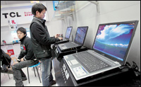 Shanghai, China Chinese staff work in a TCL store at a computer mall in Shanghai. French electronics company Legrand SA has agreed to buy a low-voltage electrical unit of struggling Chinese consumer electronics maker TCL Corp for 500 million yuan (USD67 million).