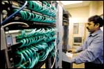 عامل صيانة بشركة الاتصالات الباكستانية في محاولة يائسة منه لمعرفة السبب وراء تعطل شبكة الاتصال الباكستانية، وكان موظفو المؤسسات والشركات في جميع أقطار باكستان فوجئوا أواخر يونيو الماضي بقطع شبكة الاتصال، فيما بدى لهم آنذاك أنه قطع مؤقت كما جرت العادة مع شركة الاتصالات الباكستانية إلا أنه بعد مضي شهر كامل على ذلك أدرك الجميع خطورة الموقف حيث إن ثمانية ملايين مستخدم للإنترنت لا يزالون غير قادرين على الاتصال بالشبكة كما أن 20% فقط من مجموع الخطوط لا تزال تعمل.