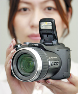طوكيو، اليابان أسرع كاميرا رقمية في العالم بإمكانية تصوير قدرها 60 صورة في الثانية ودرجة وضوح قدرها 6.0 ميجا بكسل. وهي من إنتاج شركة كاسيو اليابانية ويتوقع طرحها في الأسواق في العام المقبل.