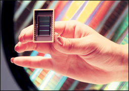 سيول، كوريا الجنوبيةموظفة بشركة سامسونغ للإلكترونيات تعرض شريحة ذاكرة من إنتاج الشركة يمكنها تخرين 80 فلم دي في دي، ما يجعلها أقوى شريحة ذاكرة حتى الآن. ويتوقع أن تتيح الشريحة تطبيقات جديدة لأجهزة الجوال والكاميرات الرقمية وغيرها من الأجهزة الرقمية.