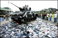 موظف تقني تابع للاتحاد الدولي للتزلج يعطي بعض المعلومات الخاصة بنظام التحكيم التكنولوجي الجديد والمستخدم الآن في أولمبياد الألعاب الشتوية 2006م بمدينة تورينو الإيطالية، ........