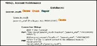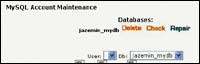 5- نجد أن القاعدة قد أضيفت في أعلى الصفحة تحت databases وأمامها خيارات للحذف أو الفحص أو الإصلاح.