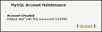 4-add db- تظهر رسالة التأكيد هذه. اضغط على زر go back للعودة إلى الصفحة الرئيسية لإدارة قواعد البيانات.