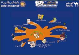 المحاور الرئيسية: لنحسب معا، الخلفيات، فروع نادي أصدقاء زينة، أضف إلى معلوماتك، حسابات زينة، الأنشطة والعروض، اللعب