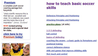 يقدم هذا الموقع مجموعة كبيرة من التدريبات على كرة القدم للناشئين، حيث يعرض أهم أساسيات كرة القدم بمبادئها الدفاعية والهجومية، كما يقدم تدريبات متنوعة تتعلق بمهارات كرة القدم وكيفية المراوغة، كما يعرض الموقع عدة رسومات توضيحية لتعليم كيفية التمركز في مختلف المواجهات، كما يعرض كيفية تدريب اللاعبين على هجمات بعينها وتقسيمهم إلى مجموعات وإتقان المهارات باستخدام الأقماع والمساحات المطلوبة لحصر اللاعبين بها ومن ثم تدريبهم على مختلف المواجهات في الملعب.