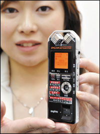 طوكيو، اليابان:جهاز تسجيل رقمي جديد عالي الدقة من إنتاج سوني، مزود بميكروفونين ذوي حساسية عالية وإمكانية التسجيل في بطاقات ذاكرة، ويمكن استخدامه في تسجيل الأصوات الحية والعروض المسرحية.