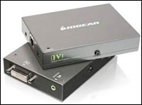 عتاد تمديد فيديو وصوت حديث من (آيوجير) تمثّل في ادوات DVI Video/Audio التي تمكن المتخصصين في هذا المجال من توزيع إشارات الفيديو والصوت لحوالي مائة قدم من خلال كيبل واحد. يشمل العتاد وحدتي DVI تمثل موزع محلي ومستقبل بعيد تستخدم كيبل الإيثرنت CAT 5e/6 حيث يوصل المرسل إلى مصدر الفيديو ليتم الإرسال إلى وحدة الاستقبال البعيدة. تلائم أدوات IOGEAR الحديثة