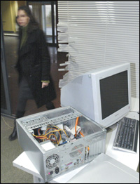 Tbilisi, Georgia A woman walks by an opened- up computer in the offices of the Georgian Imedi TV station in Tbilisi. A Georgian television channel shut down after anti-government clashes will be back on air before a presidential election on January 5. Imedi claims that some of their equipment was damaged during the shutdown.