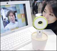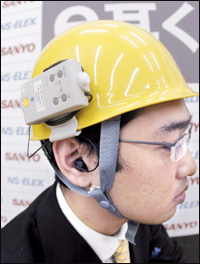 Tokyo, Japan Japans electronics giant Sanyo Electric unveils the earphone- microphone زE-mimi kunس, which has earphone and microphone inside an earpiece and noise cancelling LSI to have conversations with clear voice under noisy circumstance such as factory and event site. Sanyo will put it on the market next April.