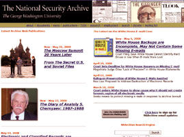 * إعداد - محمد الزواوي* يتبع هذا الموقع جامعة جورج تاون الأمريكية العريقة، ويحتوي على العديد من الملفات التاريخية الخاصة بالأمن القومي الأمريكي ويحتوي أيضًا على العديد من الملفات التي تم الإفراج عنها مؤخرًا طبقًا لقانون حماية المعلومات. من تلك الملفات يرصد الموقع ما دار في القمة الأمريكية السوفيتية منذ عشرين عامًا، وذلك بوثائق سرية من الجانبين الأمريكي