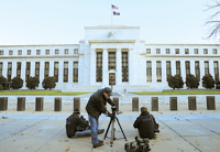 مصورون يلتقطون صور فيديو وصور ثابتة لمبنى مركز الاحتياطي الفيدرالي الأمريكي بمدينة واشنطن، حيث توقع الأمريكيون أن يعلن الاحتياطي الفيدرالي تخفيضاً في أسعار الفائدة للمرة الثانية في يوم الأربعاء 5-11-2008م لمساعدة الاقتصاد الأمريكي الذي هزته الأزمة المالية الأخيرة.