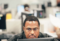 عاطل عن العمل منهمك في البحث عن وظيفة على الإنترنت في مركز لمساعدة العاطلين في البحث عن الوظائف في مدينة دايتون بولاية أوهايو الأمريكية. ويشهد المركز إقبالاً كبيراً مؤخراً نظراً لازدياد العاطلين عن العمل بسبب الأزمة المالية العالمية.