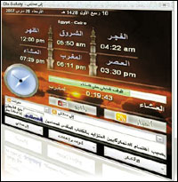 * برنامج عربي يقوم بالتذكير بأوقات الصلاة لأكثر من 252 بلداً وأكثر من 9511 مدينة، ويتميز بالتنبيه للآذان بأكثر من طريقة وعن طريق التكبير أو الاستماع للأذان كاملاً كما انه يقوم بعرض الشاشة التاريخ الهجري والميلادي، ويمكن من خلال البرنامج طباعة أوقات الصلاة وتحديثه عن طريق موقعه على شبكة الانترنت وهو متوافق مع كافة أنظمة التشغيل. الموقع على الإنترنت
