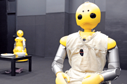 إعداد: إحمد عبد اللطيفروبوتان من صنع متسوبيشي يشاركان في عرض مسرحي تجريبي لأول عمل مسرحي بمشاركة الروبوت من إخراج المخرج الياباني أوريزا هيراتا بمسرح جامعة أوساكا بمدينة أوساكا اليابانية.