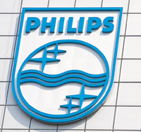 شركة الإلكترونيات الهولندية فيليبس أعلنت مؤخراً نيتها تسريح حوالي 5 بالمائة من موظفيها لمواجهة تداعيات الأزمة المالية العالمية، وتوضح الصورة شعار الشركة في مقرها بأمستردام.