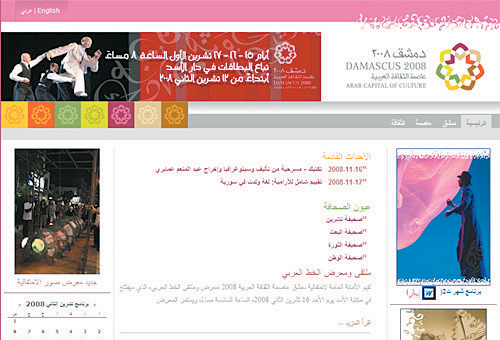 يعرض هذا الموقع معلومات عن مدينة دمشق التي نالت لقب عاصمة الثقافة العربية لعام 2008، كما يعرض الموقع أهم الفعاليات الثقافية التي تجري في العاصمة السورية على مدار العام، ويحتوي الموقع على مكتبة للفيديو تحتوي على عدد من الصوتيات والمرئيات الخاصة بالأنشطة الثقافية التي تجري في العاصمة السورية، ويعرض الموقع أيضًا دليلاً إرشاديًا لأهم الفعاليات الثقافية التي تجري شهرًا بشهر، ويمكن تحميل دليل شهر نوفمبر من الموقع، كما يعرض أهم عناوين الصحف الصادرة في سوريا وما كتبته الصحف العربية عن احتفالية دمشق باختيارها عاصمة للثقافة العربية، كما يعرض الموقع أيضًا نبذة عن تاريخ الشام.