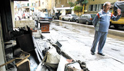 بيروت، لبنان: أعمال العنف الدامية بين الطوائف المتناحرة في لبنان لم تترك حتى الإلكترونيات، وفي الصورة (أبو رابح)، صاحب معرض حاسوب في بيروت، يقف أمام معرضه المحترق جراء الأحداث.