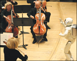 ديترويت، الولايات المتحدة: روبوت شركة هوندا (آسيمو) والذي يقود أوبرا ديترويت السيمفونية بولاية ميشيجان الأمريكية، والذي يسلط الضوء على الصندوق الخيري الجديد لتعليم شباب ديترويت الموسيقى، والمسمى (قوة الأحلام)، وذلك بقيادته للأوركسترا التي كانت تعزف لحن (الحلم المستحيل) في افتتاح الحفلة الموسيقية الخاصة التي يقودها عازف التشيللو (يويو ما).