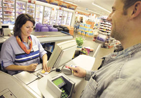 بريكيلين - هولندا: أحد الزبائن في سوبر ماركت ببلدة بريكلين الهولندية يسدد قيمة ما اشتراه من بضائع بواسطة بصمة إصبعه. وخلال فترة تجربة مدتها ستة أشهر يقوم المتجر بعمل مسح لأصابع زبائن تم اختيارهم ثم يتم سحب المبالغ المستحقة من أرصدتهم البنكية.
