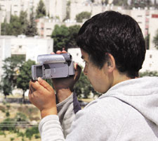 الخليل - فلسطين المحتلة: محمد الجابري الذي يعيش بالقرب من مستوطنة كريات أربع اليهودية بالقرب من الخليل في الضفة الغربية يستخدم كاميرا فيديو لتسجيل بعض اللقطات لممارسات المستوطنين اليهود. وكانت منظمة سلام إسرائيلية تدعى (بيت سليم) قامت بتوزيع عدد من كاميرات الفيديو لعدد من الأسر الفلسطينية بهدف توثيق الانتهاكات التي يقوم بها بعض المستوطنين الإسرائي