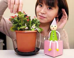 ريكو ماتسيموتو موظفة بشركة (إي - ريفيلوشين) اليابانية للألعاب تستعرض آخر منتجات الشركة في العاصمة اليابانية طوكيو. واللعبة الجديدة التي أطلق عليها اسم (الوردة الناطقة) عبارة عن شخصيات كرتونية من الأقزام موصولين بحساس خاص يغرس في تربة أي نبتة وفي حال حاول الشخص الإمساك بالنبتة أو الوردة يفاجأ بهؤلاء الأقزام وهم يتحدثون إليه. ويمكن لهؤلاء الأقزام أن