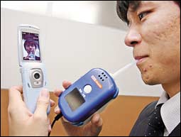 مينيزومي وادا مهندس تقني بشركة (كاي.دي.دي) ثاني أكبر مشغل لهواتف الجوال باليابان يستعرض تقنية جديدة منتجة من قبل الشركة تساعد أصحاب شركات سيارات الأجرة والباصات في فحص مقدار حالة السكر لسائقيهم لاسلكياً عبر هواتفهم الخلوية. والمنتج الجديد أطلق عليهAlc-Mobile أو الهاتف الكحولي يُباع بقطعتين إحداهما جهاز للنفخ لقياس مقدار السكر من خلال نفس المستخدم والقطعة الثانية عبارة
