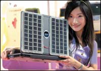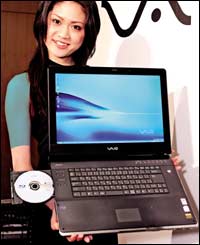 عارضة تابعة لشركة سوني العالمية في مجال الصناعات الإلكترونية وأجهزة الكمبيوتر تستعرض منتج الشركة الجديد من الكمبيوترات المحمولة (Vaio type A). ويعد هذا المنتج الجديد الأول ........