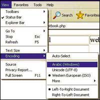 8- حتي نستعرض هذه الحروف حاليا ، نقوم بفتح قائمة view ومنها encoding ومنها Arabic windows.