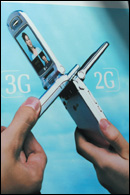 ملصق تجاري يوضح المنتج الجديد لشركة هوتشيسون من الجيل الثالث للهواتف النقالة وقد بدأت شركة هوتشيسون للاتصالات فعلياً الدخول في السوق الأمريكي للأسهم بنيويورك في الخامس ........