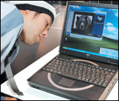 تلميذ ياباني ينظر باهتمام إلى المنتج الجديد لشركة أن أي سي(NEC) وهو منتج أولي للكمبيوترات المحمولة والتي تعمل معتمدة على بطاريات مدعمة بتقنية شرائح الوقود وتم عرض المنتج ........