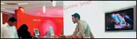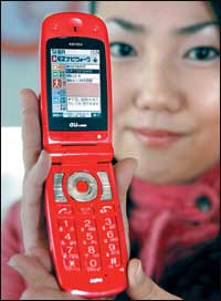 موظفة يابانية تابعة لشركة الاتصالات اليابانية العملاقة (KDDI) تستعرض موديلات جديدة من الهواتف النقالة من إنتاج شركة سانيو(Sanyo) العالمية. وهذه الهواتف هي من الجيل الثالث ........