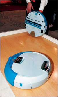 يظهر في الصورة الروبوت المنزلي الجديد (سكوبا)(Scooba) والذي يعد صرعة جديدة في مجال صناعة الروبوتات المنزلية.