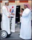 الرئيس التنفيذي لمجموعة شركات كانو لعلم الابتكار السيد وليد كانو (يسار) أثناء قيامه بشرح المنتج الجديد لشركته للسيد صادق شباب نائب رئيس شركة إي أس قلف (يمين)، والمنتج الجديد لشركة كانو هوعبارة عن وسيلة نقل بعجلتين تتميز بالسرعة وسلاسة الحركة، ويأتي هذا العرض في مستهل إقامة المعرض السنوي لتكنولوجيا المستقبل الذي تحتضنه المنامة.