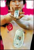 عارض صيني يقوم باستعراض منتج جديد من الهواتف النقالة لإحدى الشركات وذلك بإحدى أسواق مدينة نانجينغ الصينية، وقد صرحت مؤخراً وزارة الصناعة الصينية بأن عدد مشتركي الهاتف بنهاية شهر مارس زاد بنسبة 25.9% أي زيادة قدرها 349 مليون مشترك، وتتوقع الوزارة زيادة هذا العدد بنهاية هذا العام.