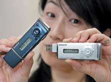 موظفة بشركة سوني العالمية والمتخصصة في مجال صناعة الأجهزة الإلكترونية والترفيهية تستعرض منتج الشركة الجديد من المسجلات الرقمية (IC) وذلك بمقر الشركة الرئيس في العاصمة ........
