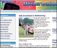 يقدم هذا الموقع كل ما تحتاجه من معلومات لكي تقوم برحلتك الأولى في بالون الهواء الساخن، الذي يعد من الرياضات المفضلة والرخيصة التي تتسم بالمتعة والمغامرة. ويقدم هذا الموقع العديد من الأدوات والمصادر التي تعلمك كيف تطير بالونات الهواء الساخن وآلية عملها، وكيف تستطيع قيادتها وتوجيهها والارتفاع والانخفاض بها. كما يقدم مجموعة من سباقات البالونات الشهيرة