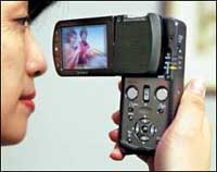 ساوري تاكاهاتشي الواضحة في الصورة والموظفة بشركة سوني عملاقة الإلكترونيات تستعرض المنتج الجديد للشركة من كاميرات الديجتل سايبرشوت دي أس سي ........