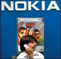 صورة التقطت في الرابع من يونيو لبائع جوالات هندي يستخدم جوال نوكيا للرد على مكالمة في سوق للجوالات بنيودلهي، وقالت شركة نوكيا العملاقة الفنلندية في السابع من يونيو الماضي بأنها تحصلت على عقود بمبلغ 200 مليون يورو (246 مليون دولار) للجيل الثاني من خدمة الجي ام اس لمعدات الشبكات وذلك عن طريق شركة بنسل الهندية (BNSL) وستمد شركة بنسل بأربعة ملايين خط اتصال للجوال في شمال الهند.