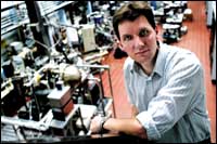 الباحث الدانماركي بالمعهد الدانماركي التكنولوجي السيد اورليش كوادي ويظهر خلفه المختبر الخاص بفريق البحث التابع له والذي أعلن مؤخراً تطويره قرصا ........