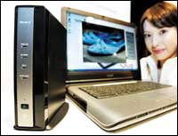 تقوم إحدى العارضات التابعة لشركة Grundig للمنتجات الإلكترونية بمعرض المنتجات الإلكترونية الاستهلاكية آي إف أي(IFA) جهاز متعدد الوسائط يحتوي على قرص صلب بسعة ثلاثين قيقا ........