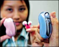 يعرض أحد موظفي شركة سوني العملاقة في مجال الإلكترونيات ومشغلات الموسيقى الرقمية، جهازا جديدا من إصدار الشركة عبارة عن ووكمان صغير على شكل حبة الفاصولياء ويعمل هذا الجهاز ........