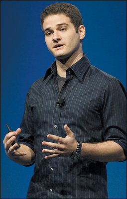 سان فرانسسكو - الولايات المتحدةدستن موسكوفيتش، المؤسس المشارك للموقع الاجتماعي الشهير (فيس بوك دوت كوم)، الذي تجاوزت تقديرات بيعه 15 بليون دولار. وهو هنا يلقي كلمة ضمن مؤتمر صحافي في سان فرانسسكو مخصص لعرض أحدث التقنيات الإلكترونية.