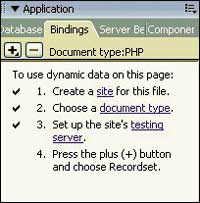 9- نذهب إلى لوحة application من أعلى سنجد أنها أصبحت نشيطة وتقوم التعليمات لنا اننا انهينا ثلاث خطوات وهي تعريف موقع وتحديد نوع المستند واختيار ملقم الاختبار والباقي انشاء تعريف لقاعدة البيانات .