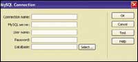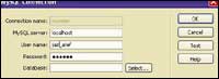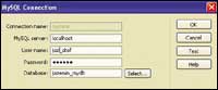 حيث الأولى هي اسم لتعريف الاتصال ويمكننا هنا كتابة أي اسم , والثانية هي نوع الملقم أما اسم المستخدم فالمقصود به اسم المستخدم لقاعدة البيانات.