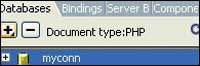 20- نضغط على ok لاغلاق المربع نجد ان هناك اتصالا قد تم مع قاعدة البيانات واصبحت هناك أيقونة باسم myconn اسفل كارت database في مربع application .