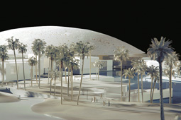 رسم بالحاسوب للنسخة الإماراتية من متحف اللوفر بباريس، حيث تقرر إنشاء متحف يحمل اسم المتحف الفرنسي الشهير في جزيرة السعديات بإمارة أبوظبي، وأعلنت إمارة أبوظبي عن تكوين هيئة من كبار الشخصيات الثقافية في فرنسا للنظر في إنشاء المتحف الذي سيضم أعمالا ومقتنيات من متحف