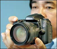 موظف تابع لشركة نيكون العالمية الرائدة في مجال صناعة الكاميرات الرقمية يستعرض منتج الشركة الجديد من سلسلة(D) الشهيرة من الكاميرات الرقمية، وآخر هذه السلسة كانت الكاميرا ........