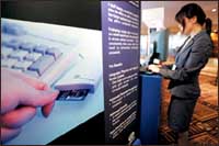 مديرة المبيعات بشركة سيسكو (CISCO) العالمية السيدة إيميلي تان تقوم بتجربة بطاقة تعريف ذكية بدلاً من كلمة المرور للدخول إلى نظام التشغيل في كمبيوترها المحمول وذلك في ........