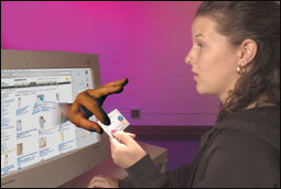 موظف مايكروسوفت ساتيندرا ناينوال يجرب لعبة سباق مكبرة بمناسبة انعقاد القمة السنوية الثامنة لكلية مايكروسوفت البحثية، وهي لعبة مبنية على فكرة ابتكرها ستيفن فينر، المحاضر بجامعة كولومبيا بالاشتراك مع طلابه.