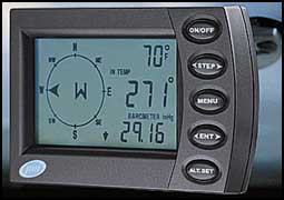 جمعت هذه البوصلة بين تقنيتي الحساسات المغناطيسية والمحطات الجوية، حيث إنها تريك الطريق وتتنبأ بحالة الطقس أيضا، مزودة بشاشة سائلة تعرض فيها الاتجاهات بواسطة مؤشر البوصلة، ........